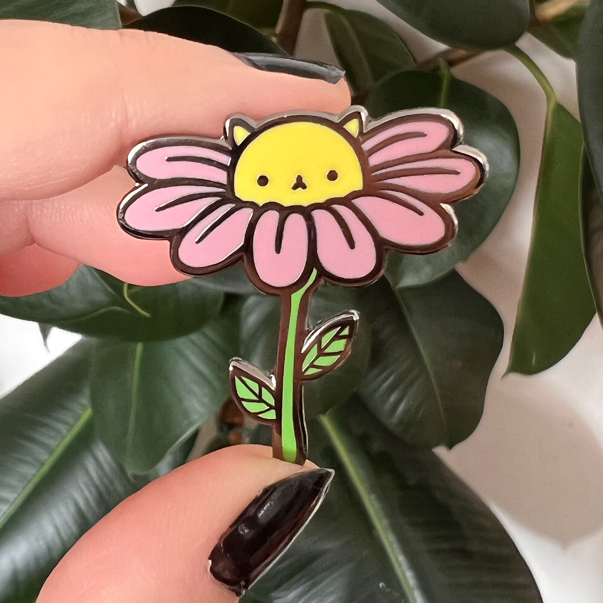 Daisy Cat pin measures approximately 3.5 x 3.5 cm or 1.4 x 1.4 inches