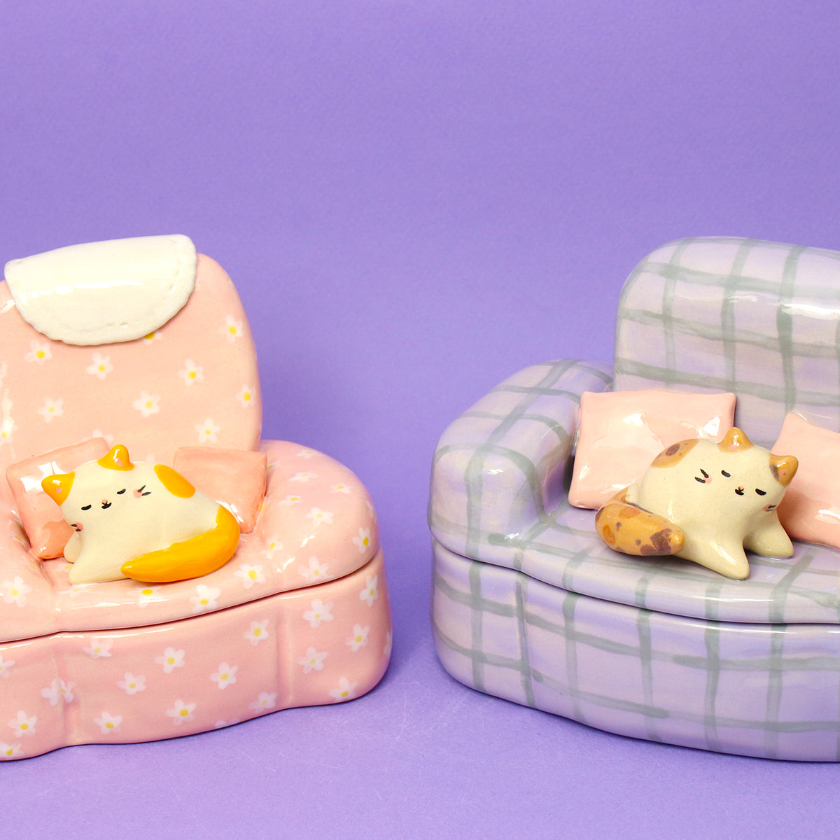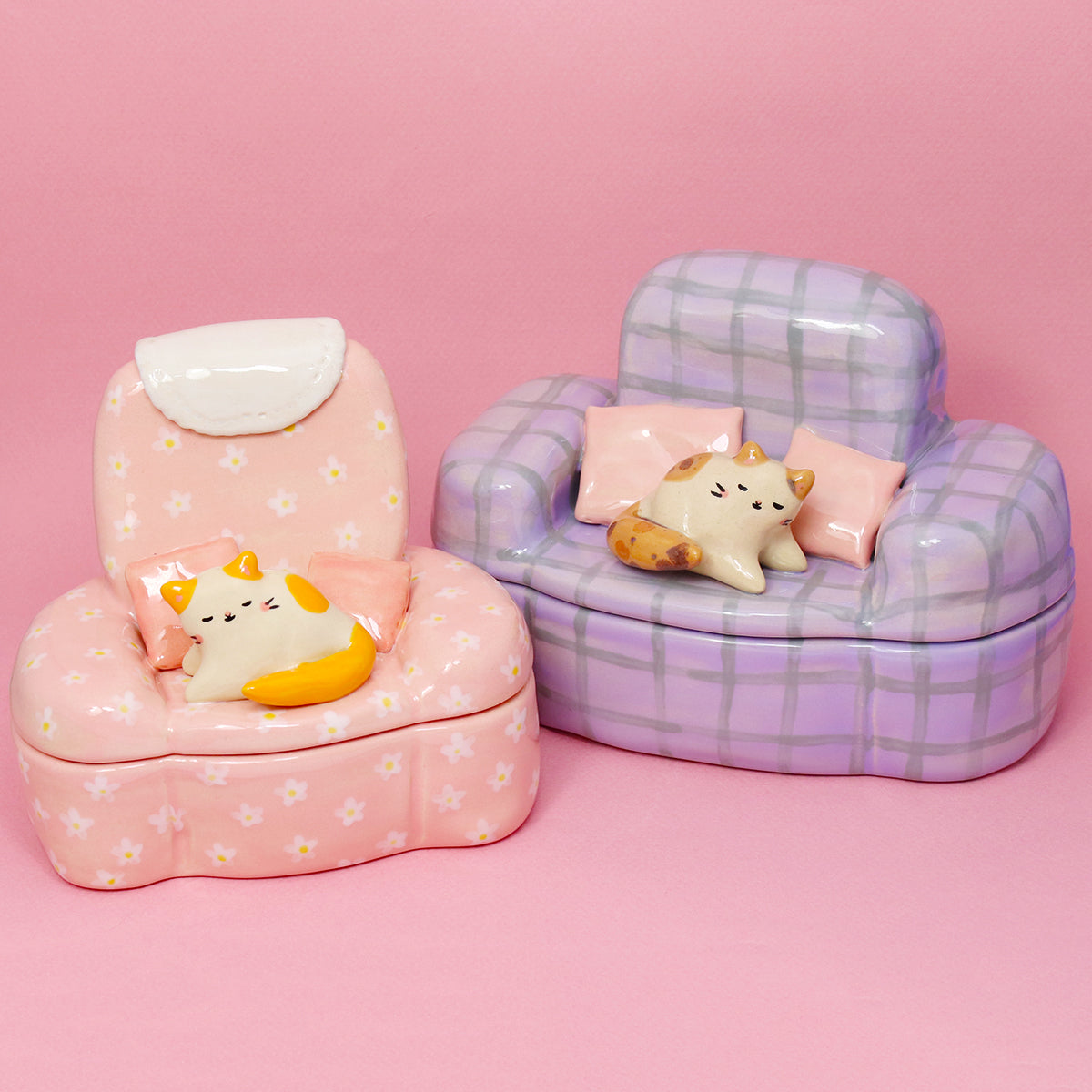Ceramic kitty container, handsculpted and handglazed by me ♥