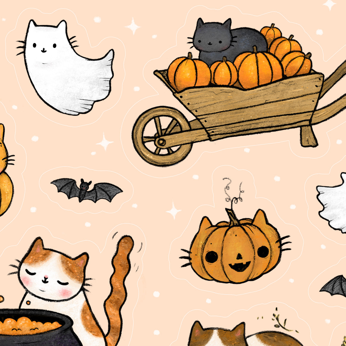 Set of 16 kitty stickers, professionally printed on a matte vinyl sticker sheet. These ladies are super durable and water/weather proof!