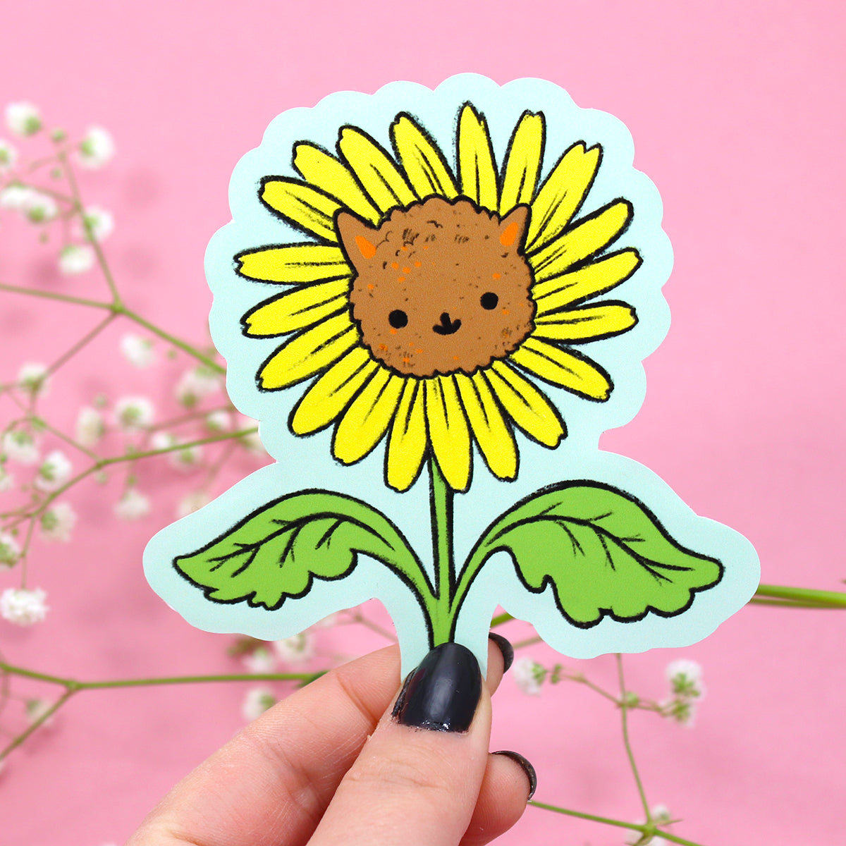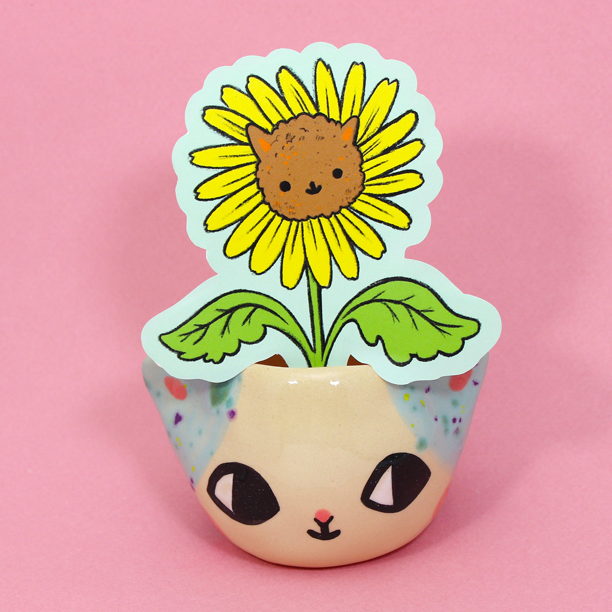 Sunflower Cat sticker professionally printed on matte vinyl. These ladies are super durable and water/weather proof!